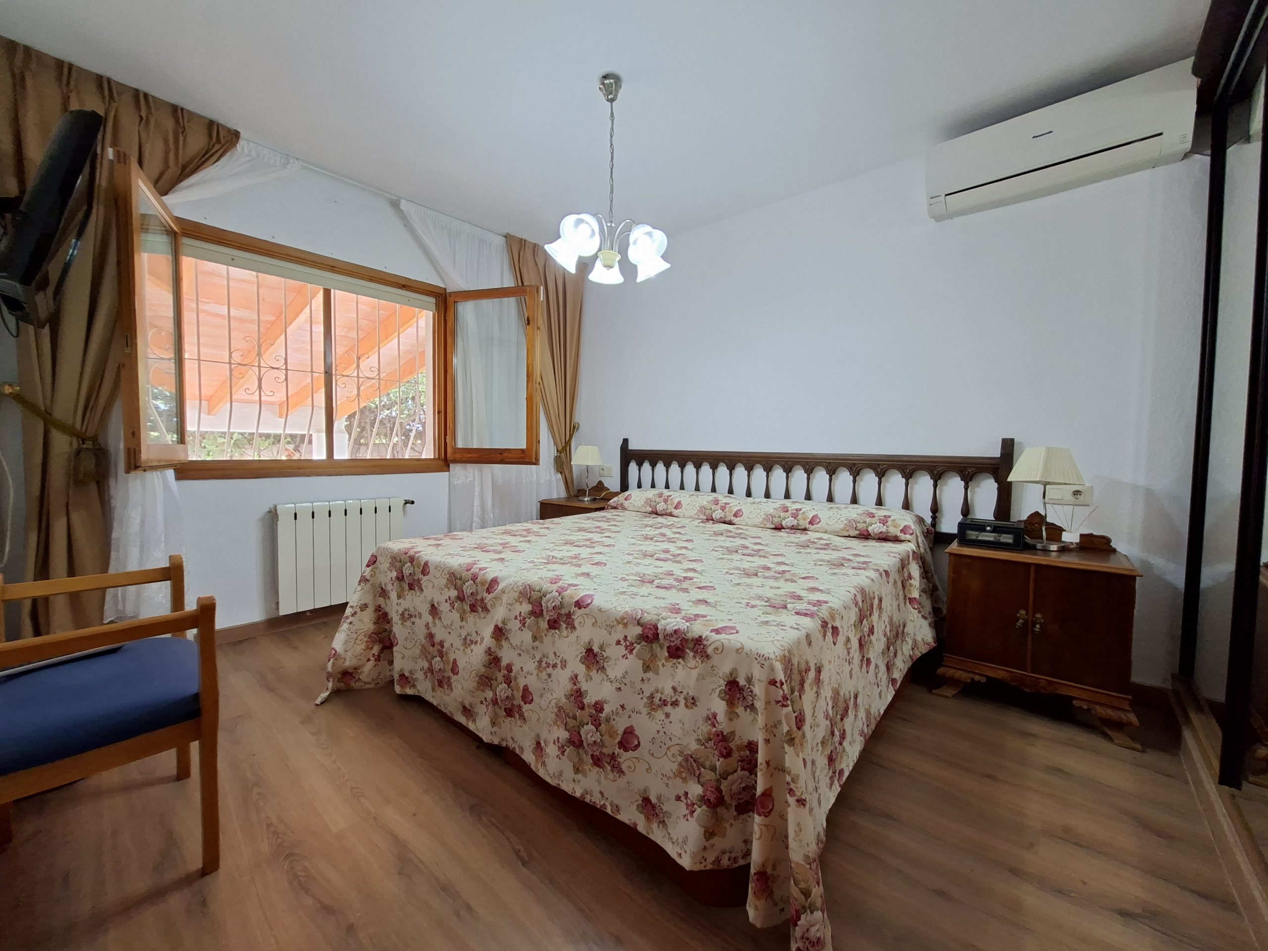 El exterior ofrece un entorno ajardinado con piscina, zona de barbacoa bajo pérgola, garaje cerrado, espacio de aparcamiento y dos trasteros. La vivienda está en perfecto estado y dispone de materiales de alta calidad: aire acondicionado con bomba de calor, calefacción a gas, carpintería de calidad, suelos de tarima, vigas de madera y cerramientos Climalit, entre otras mejoras.